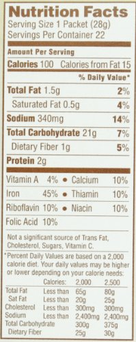 Quaker instant grits nutrition label. Cereals, QUAKER, corn grits, instant, cheddar ... - SELF Nutrition Data It is also a good source of Thiamin, Riboflavin, Niacin and Folate, and a very good source of Iron. The bad: This food is very high in Sodium. Caloric Ratio Pyramid Caloric Ratio Pyramid for... Instant grits, butter by The Quaker Oats Company nutrition facts and ... Instant grits, butter by The Quaker Oats Company contains 150 calories per 42 g serving. This serving contains 1.5 g of fat, 4 g of protein and 32 g of carbohydrate. The latter is g sugar and 2 g of dietary fiber, the rest is complex carbohydrate. Save on Quaker Instant Grits Original Order Online Delivery - Stop & Shop Quaker Instant Grits Original 12 oz box Quick Facts Kosher Nutrition 100 Calories 0g Sat Fat 310mg Sodium 0g Sugars Nutrition Facts About 12 servings per container Serving Size 1.0 packet Amount per serving Calories 100 % Daily Value* Total Fat 0.5g 1 Saturated Fat 0g 0 Trans Fat 0g Polyunsaturated Fat 0.5g Monounsaturated Fat 0g Cholesterol 0mg 0 Nutrition Facts for The Quaker Oats Company - Instant Grits The Quaker Oats Company - Instant Grits Brand: The Quaker Oats Company 100 calories in 1 packet Where do the calories come from? 8% from Protein (2g) 13% from Fat (1.5g) 80% from Carbs (21g) Quick Stats Calories 100 5% DV Protein 2 g 4% DV Fat 1.5 g 2% DV Carbs 21 g 7% DV Fiber 1 g 4% DV Sugar 0 g 0% DV Sodium 340 mg 15% DV Calcium 90 mg 7% DV