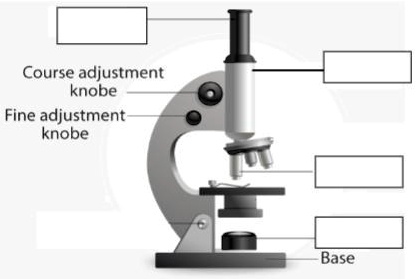 Label Microscope Diagram - EnchantedLearning.com arm - this attaches the eyepiece and body tube to the base. base - this supports the microscope. body tube - the tube that supports the eyepiece. coarse focus adjustment - a knob that makes large adjustments to the focus. diaphragm - an adjustable opening under the stage, allowing different amounts of light onto the stage.