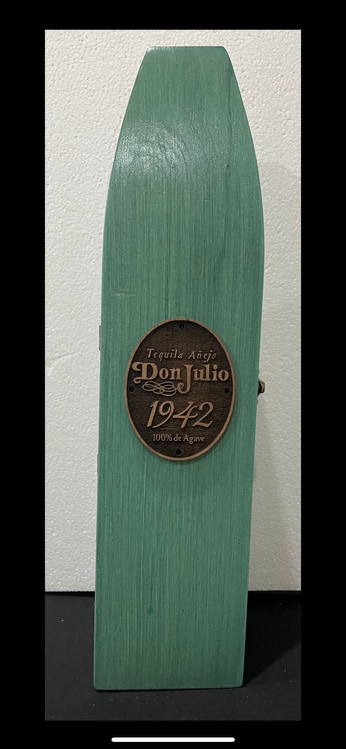 DON JULIO 1942 Tequila Anejo Coffin Box with Original bottle ... - eBay Don Julio 1942 Tequila Aneja EMPTY bottle #0157941 with original wooden cap and green wooden presentation "coffin" box. The hinges and clasp on box are complete and working properly.