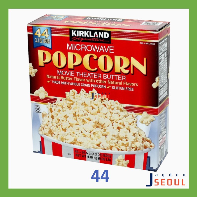 Calories in Kirkland Signature Movie Theater Butter Microwave Popcorn ... Comprehensive nutrition resource for Kirkland Signature Movie Theater Butter Microwave Popcorn. Learn about the number of calories and nutritional and diet information for Kirkland Signature Movie Theater Butter Microwave Popcorn. This is part of our comprehensive database of 40,000 foods including foods from hundreds of popular restaurants and thousands of brands.