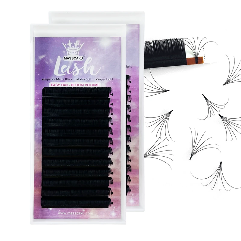 MASSCAKU sell one second rapid blooming worldbeauty bulk private label easy fan korean eyelash extensions with empty eyelash box