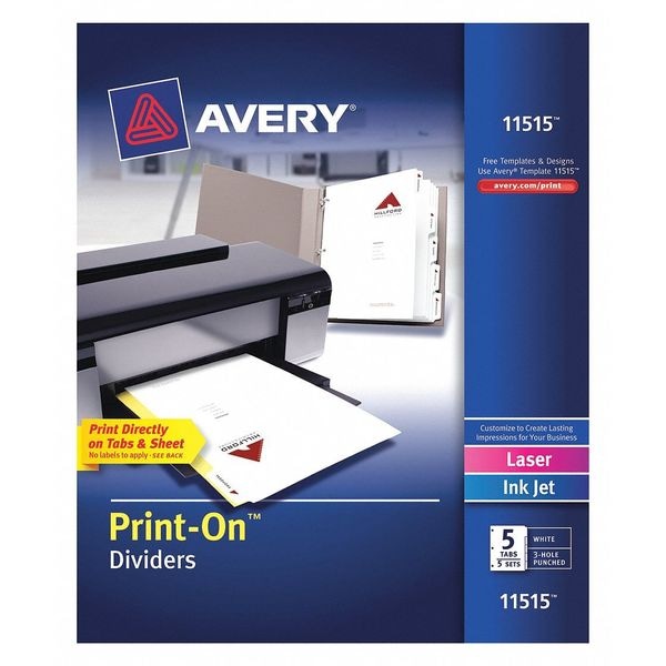 AVERY 5 -Tab Pembagi Pengikat Lebar Ekstra, Cetak Mudah & amp; Terapkan Hapus Label Strip, Pembuat Indeks, Putih, 5 Set 11440