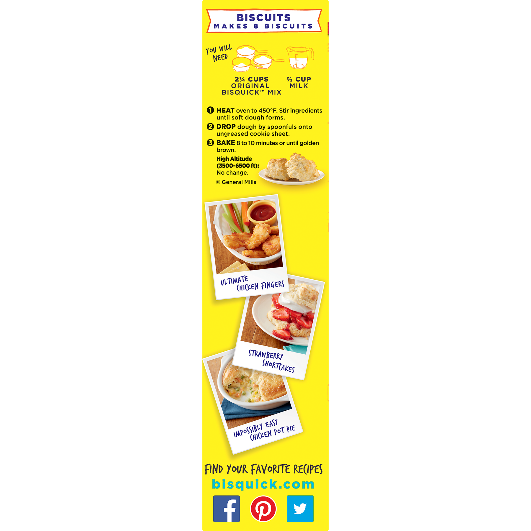 Coffee Cake - Bisquick Recipes Steps. 1 Heat oven to 375°F. Grease 9-inch round pan. In small bowl, stir streusel ingredients until crumbly; set aside. 2 In medium bowl, mix coffee cake ingredients until blended. Spread in pan. Sprinkle with streusel. 3 Bake 18 to 22 minutes or until golden brown. Nutrition. Betty Crocker Bisquick Original Pancake & Baking Mix - Instacart Get Betty Crocker Bisquick Original Pancake & Baking Mix delivered to you in as fast as 1 hour via Instacart or choose curbside or in-store pickup. Contactless delivery and your first delivery or pickup order is free! Start shopping online now with Instacart to get your favorite products on-demand. Calories in Bisquick Pancake Mix and Nutrition Facts - FatSecret Calories in Bisquick Pancake Mix and Nutrition Facts Foods Brand List Bisquick Pancake Mix Food database and calorie counter Bisquick Pancake Mix Nutrition Facts Serving Size 1/3 cup (40 g) Amount Per Serving Calories 150 % Daily Values* Total Fat 3.00g 4% Saturated Fat 0.500g 3% Trans Fat 0.000g Polyunsaturated Fat 0.000g Monounsaturated Fat Original Pancake & Baking Mix - Bisquick - FatSecret 30 Sept 2020 — There are 150 calories in 1/3 cup (40 g) of Bisquick Original Pancake & Baking Mix. Nutrition Facts. Serving Size, 1/3 cup (40 g) ...