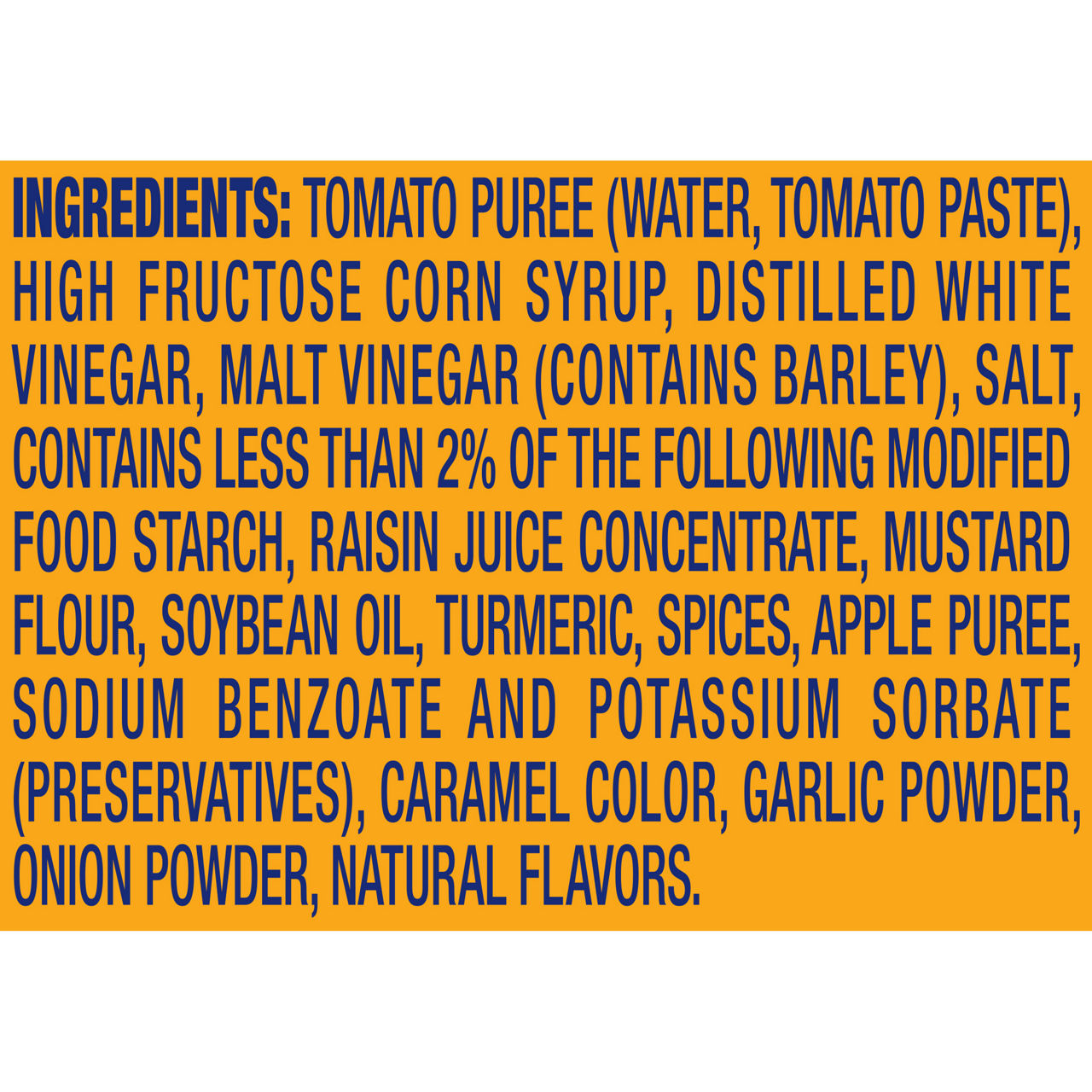 Nutrition Label INGREDIENTS: HEINZ 57 STEAK SAUCE (tomato puree (tomato paste, water), high fructose corn syrup, distilled white vinegar, malt vinegar, salt, contains 2% or less of the following: modified food starch, raisin juice concentrate, mustard flour, soybean oil, turmeric, spices, apple puree, sodium benzoate and potassium sorbate preservatives), caramel color, garlic powder, onion powder, natural ...