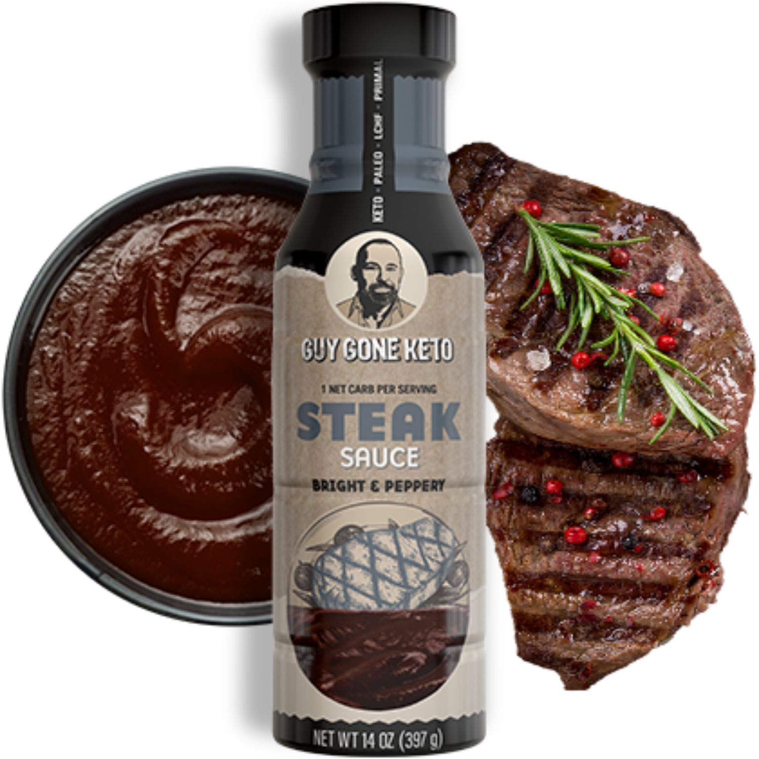 Guy Gone Keto Steak Sauce - Sugar Free Ketogenic Condiments Created for Keto, Primal, LCHF, & Paleo Diets (6 Pack, Steak Sauce)