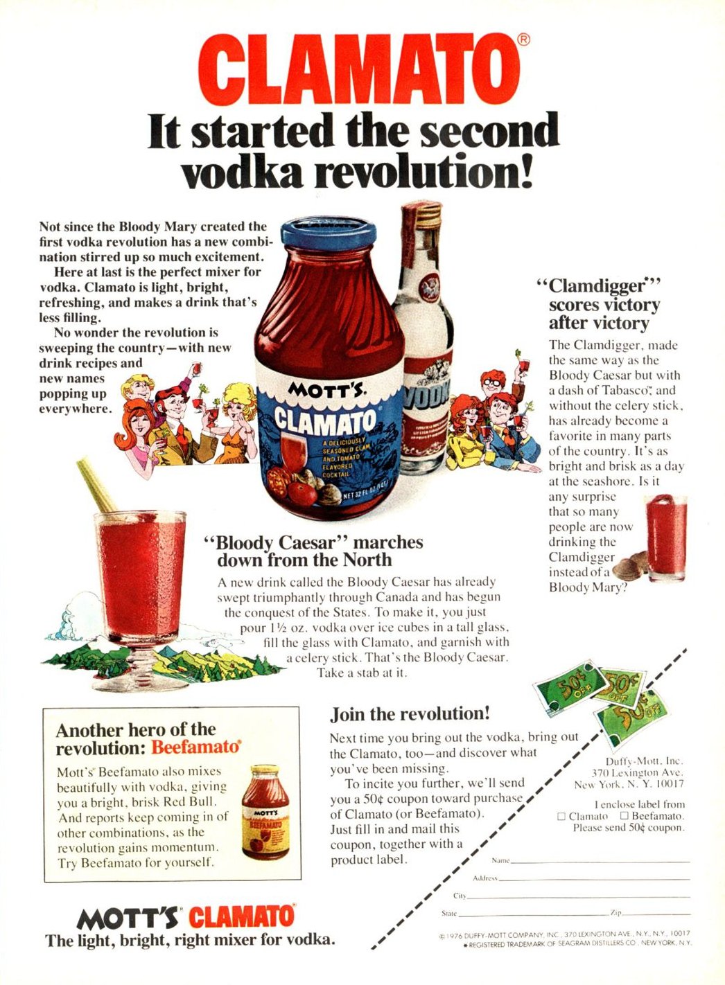 Home | Clamato Learn about your options for creating all kinds of flavor-packed recipes, both beverages and meals. Clamato ® began refreshing us in California in the year 1969. Farmers chose our juice as the drink that made their long workdays under the sun more tolerable. Soon, its popularity spread all over the United States and Mexico.