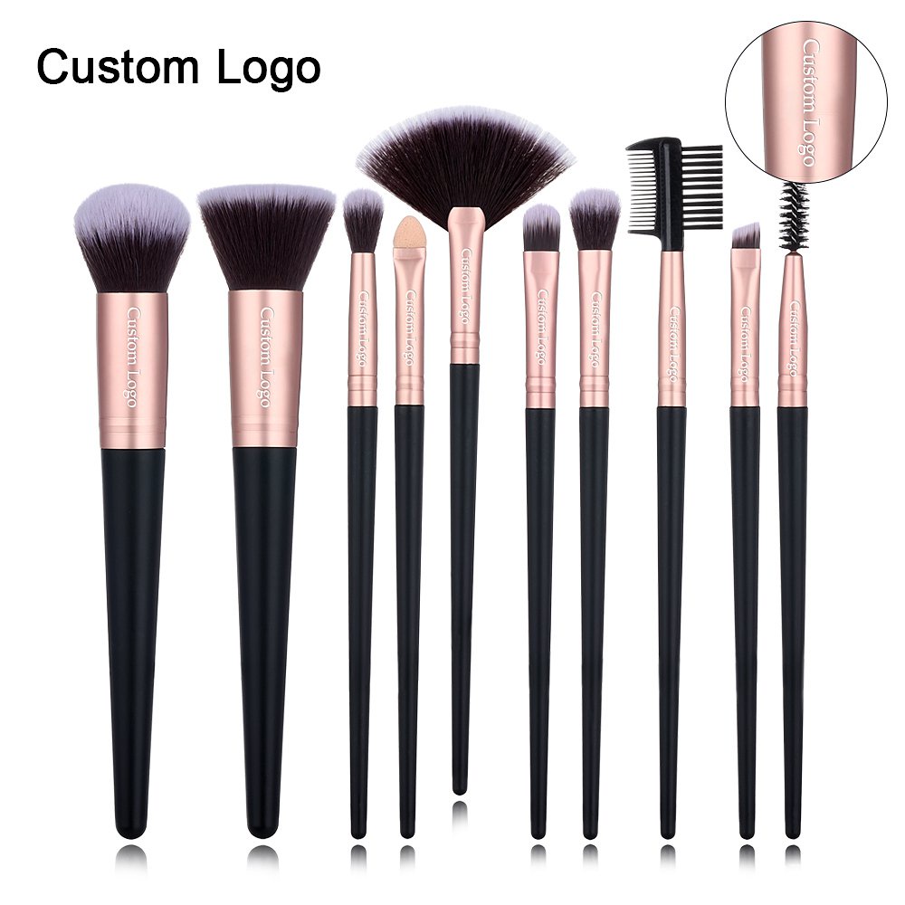 Private Label Pro 10pc Makeup Brush Set w/Case - MQO 50 pcs Our gorgeous 10 pc professional Brush Set will ensure you have a brush for every makeup need. A 10 piece complete collection of essential face and eye ...