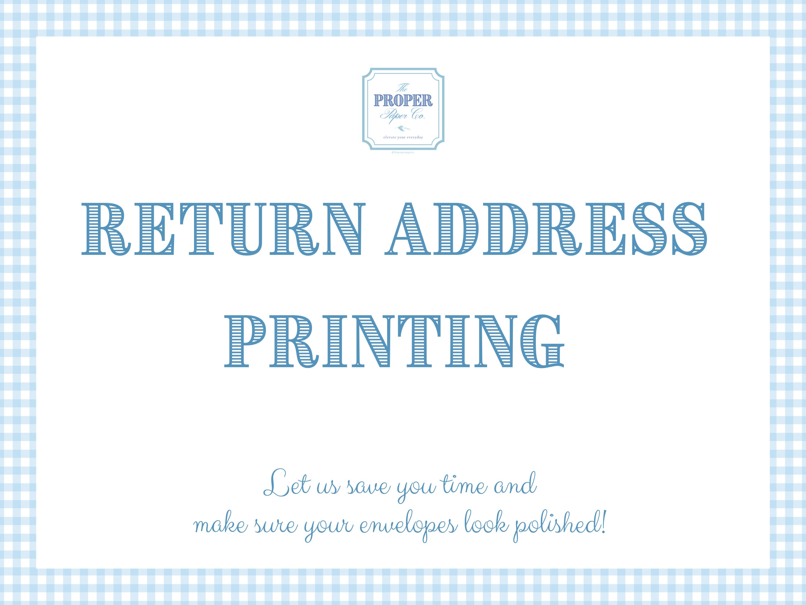 How to Address Wedding Invitations: Return Address 23 Jan 2019 — Formally, the return address should be handwritten, but it is acceptable today for this to be printed, to use a mailing label, or a return ... 1-3.3 Proper Return Delivery Address Placement The return address tells the Postal Service where the sender of a mailpiece wants it returned if the Postal Service cannot deliver it. Place the return address ...