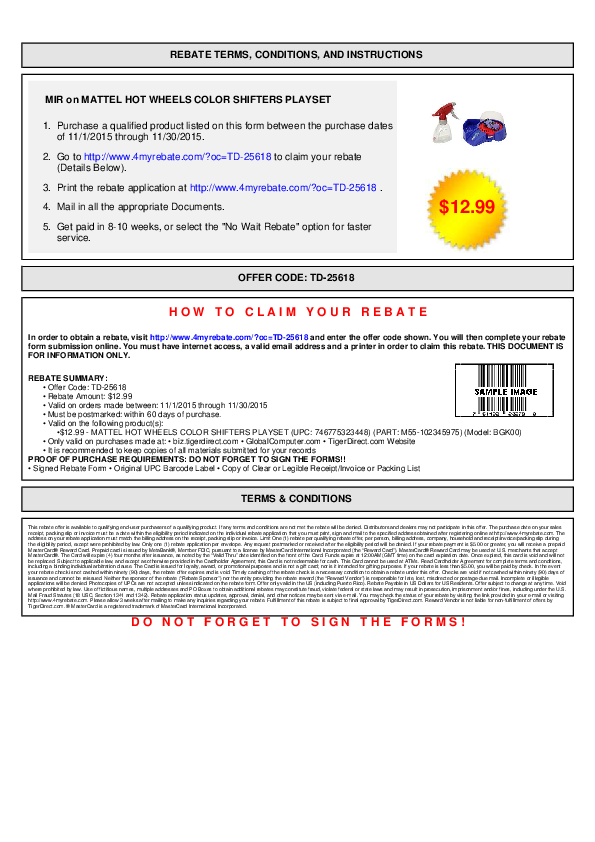 How to Send in UPC Labels for a Refund The universal product code, or UPC, is a bar code that typically has 12 digits and is usually found on the back or bottom of perishable and non-perishable ... How to Quickly Remove a UPC Bar Code for a Mail-In Rebate Jul 20, 2019 ... A quick demonstration of how I remove UPC bar codes for mail-in rebate applications.Buy an X-Acto Knife: an Amazon ... [META]What exactly is the UPC barcode label? - Reddit May 14, 2015 ... 14 votes, 10 comments. The items I'm getting a rebate for have barcode labels on the plastic wrap they came in, and on the box itself. Which one do I… What is a proof of purchase for rebates? - Advance Auto Parts The proof of purchase (also commonly referred to as a UPC) is used to show that the correct item for the rebate was purchased. It is located on the box or ...