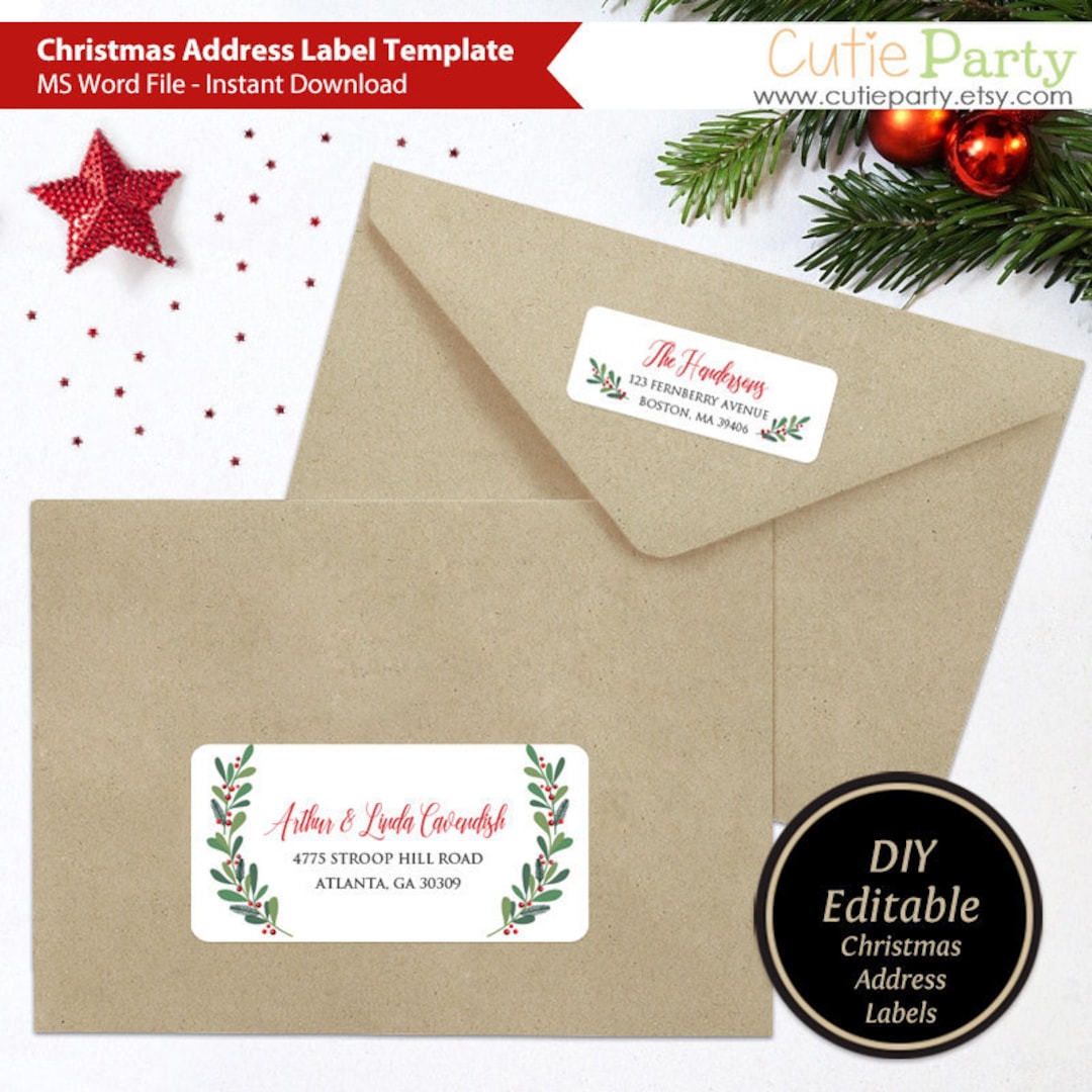Holiday Labels - Blank or Custom Printed | OnlineLabels® Make custom holiday cards with blank, printable cardstock. Mail letters with happy Hanukkah, Christmas, and Kwanzaa wishes. Decorate wrapping paper with special shapes including stars, hearts, Christmas trees, and more. Create personalized wine bottle labels to give out as hostess, white elephant, and office gifts. Free Templates, Clip Art & Suggested Wording | Geographics CLICK HERE FOR MAILING LABELS: 1. DOWNLOAD WORD TEMPLATES BY GEOGRAPHICS® Search Template Locate the 5-digit item number in the bar code or on the product label. Enter it in the above search box and click the Download Template button. HOW TO FIND ITEM # 2. FIND FREE WORD TEMPLATES, CLIP ART & WORDING 3. Free Printable Holiday Address Labels | Free printable labels ... Free printable holiday address labels by Erin Rippy of InkTreePress! This collection of address labels includes standard sized labels, round address labels, and envelope wrap address labels. Labels are in printable PDF templates which are both fillable and editable. Holiday Mailing Label Template - Etsy Check out our holiday mailing label template selection for the very best in unique or custom, handmade pieces from our shops.