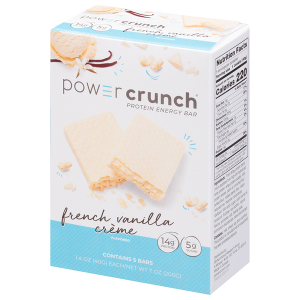 Power Crunch Protein Energy Bar Cookies & Creme - 12 ct Power Crunch Protein Energy Bar Cookies & Creme - 12 ct . 1.4 oz bar . See Best Price . Nutrition . 220 . Calories 7 g. Sat Fat 100 mg. ... If you receive a product from Giant Food, and the nutritional information on the product label does not match the information on our site, please contact Giant Food customer service and we will arrange for ... Power Crunch Protein Energy Bar Salted Caramel All Aisles / Snacks / Energy & Protein Bars / Protein Bars / Power Crunch Protein Energy Bar Salted Caramel . Power Crunch Protein Energy Bar Salted Caramel . 1.4 oz bar . See Best Price . Nutrition . 215 . ... If you receive a product from Giant Food, and the nutritional information on the product label does not match the information on our ... power crunch protein energy bar French vanilla cream Find calories, carbs, and nutritional contents for power crunch protein energy bar French vanilla cream and over 2,000,000 other foods at MyFitnessPal Power Crunch : Protein Bars : Target Power Crunch Wafer 14g Protein Energy Bar - French Vanilla Cream - 5pk Power Crunch 316 SNAP EBT eligible See price in cart When purchased online Power Crunch Wafer 13g Protein Energy Bar - Triple Chocolate - 5pk Power Crunch 271 SNAP EBT eligible See price in cart When purchased online